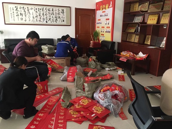 臨近春節,年味日漸濃郁,城發物業公司為業主服務解業主所需,秉承關懷業主的人文理念為各住宅小區及公租房業主準備了包含對聯、福字、窗花、紅包袋的春節福袋,并組織員工上門為業主送去春節福袋,表達對業主的春節祝福。