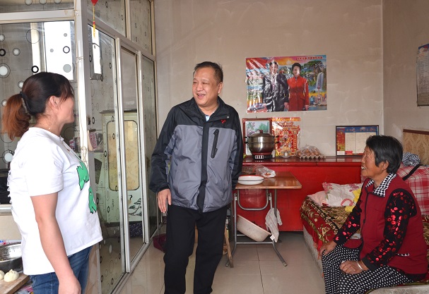 一下車,呂德育、吳利勤就走進了“一對一”包扶貧困戶翟金蓮老人家中,老人因患有腦梗,年歲又高,沒有勞動能力,導致家庭貧困。呂德育關切地詢問了老人近來的身體健康狀況,仔細地查看了家里的環境衛生情況,并向老人送去了自己的慰問金。老人感激地指著習主席的畫像說:“共產黨好,習主席好,多謝你們領導干部關懷和照顧,吃不愁,穿不愁,居住環境也干凈了,病了也有村合作醫療。我們老人趕上了好時代,才過上了這樣幸福的生活。”在交談中,呂德育再三叮囑老人要保重自己的身體,囑咐村干部要多照顧老人,特別要注意老人的身體健康和居家環境衛生,讓老人度過一個幸福、安詳的晚年。張永、云崗、武云、趙永強也分別走訪調研了“一對一”包扶貧困戶,征求了貧困戶的意見和建議。