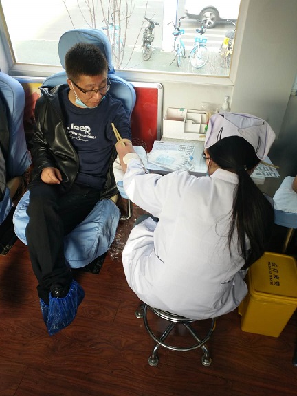在獻血現場,黨支部書記呂振平還不忘普及獻血知識,說道,其實獻血是利人利己的事情。科學研究表明,平均每個成年人有4000~5000毫升血液,其中,80%左右在血液循環系統內流動,20%左右在體內貯存用于補充,一般每次獻血抽取的血液占全身血液總量的1/20以下,這不但不影響健康,還能刺激骨髓的造血功能。是啊,我獻血四次了,也沒覺得對身體有什么傷害呢。 我為人人,人人為我,無償獻血者獻血量不滿800毫升的,本人用血時按獻血量的3倍享受免費用血;獻血達800毫升及以上者,終身享受免費用血。志愿者在獻血的同時還熱烈地聊著義務獻血的意義,車內匯集著滿滿的愛意。