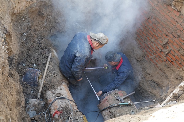 據悉,此次出現故障的是DN350管線,搶修需在泄水泄壓停暖的狀態下進行,該管道為供水管道,管內熱水溫度高達90多度,這也加大了搶修難度。"為確保此次受影響的65萬平米熱用戶能夠及早恢復供熱,金橋分公司馬不停蹄地連夜施工,進行搶修。"王永彪說。