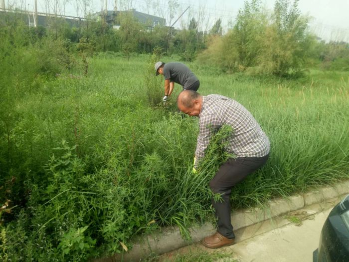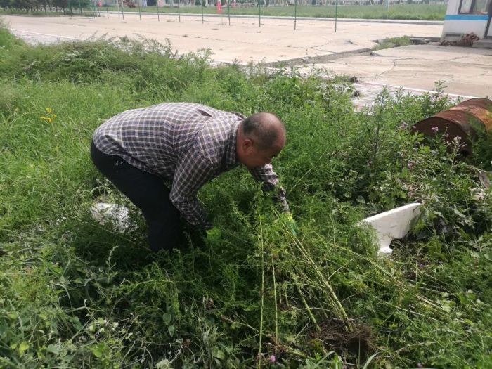 上午七點,大家做好分工合作,不怕臟,不怕累,挽起袖子褲腿開始勞動起來,拔草、清運雜草等各項工作井然有序。戶外溫度高達30多度,大家頂著烈日酷暑,個個汗流浹背、干勁十足,勞動場面熱火朝天。雖然園區雜草分布范圍大,想徹底清除雜草并非易事,但是職工們不懼困難,依然在烈日下的草坪中認真地尋找雜草并將其清除干凈。經過大家兩天的共同努力,園區的雜草已基本清除干凈,億陽物流園區的整體環境煥然一新。