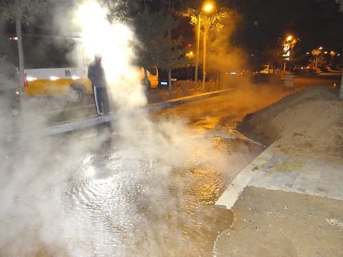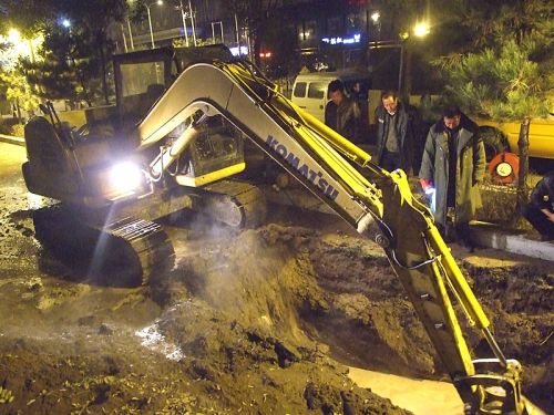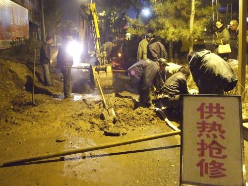 工作人員兵分幾路,對(duì)一次網(wǎng)和熱力站進(jìn)行泄水,同時(shí)在跑水地點(diǎn)進(jìn)行開挖,并將水抽干,待破損管網(wǎng)露出后,按預(yù)定技術(shù)方案進(jìn)行更換和焊接。時(shí)值入冬,夜間溫度已在零下,相關(guān)領(lǐng)導(dǎo)及搶修人員一直在現(xiàn)場工作,無人休息,毫無怨言。在寒風(fēng)中工作人員咬緊牙關(guān),爭分奪秒,連續(xù)奮戰(zhàn)了10多個(gè)小時(shí),終于在第二日凌晨7時(shí),成功將跑水事故處理完畢,并于12時(shí)恢復(fù)了熱力站正常運(yùn)行。