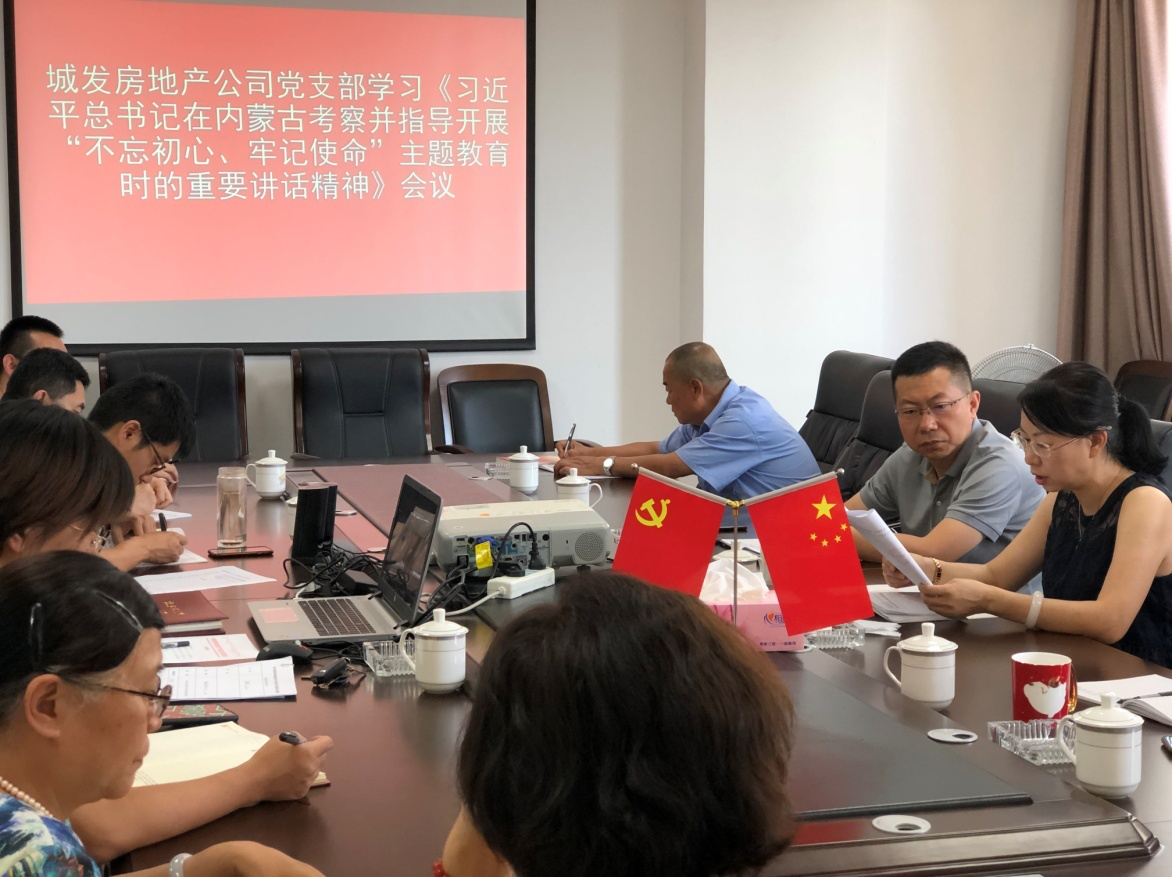 7月25日,房地產公司黨支部組織公司全體黨員干部和入黨積極分子,在城發集團11樓會議室學習了習近平總書記在內蒙古考察并指導開展“不忘初心、牢記使命”主題教育時的重要講話精神。