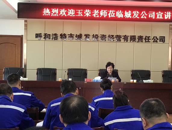 10月18日下午3時,管網公司黨支部聯合城發物業公司黨支部、物流公司黨支部、客運公司黨支部、房地產公司黨支部共同邀請榮獲“草原英雄小姐妹”稱號的玉榮老師進行宣講。