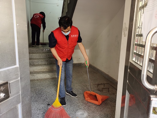 在金口岸公寓,大家頂高溫冒酷暑,有的拿起掃帚、衛生夾,撿拾小區垃圾、煙頭等雜物;有的在樓道內打掃衛生、清理雜物;有的向過往居民發放宣傳資料,營造了創建文明城市你我共同參與的良好氛圍。