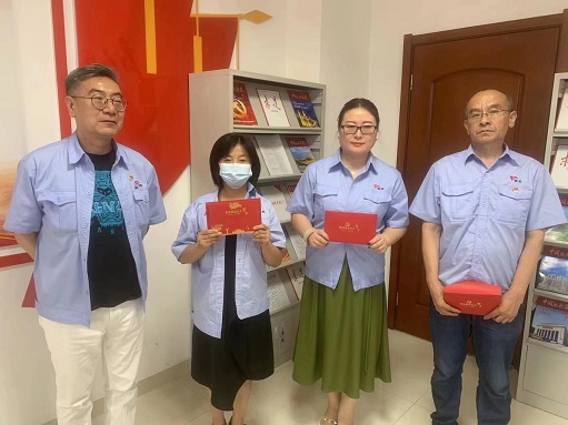 胡日查同志宣讀了集團公司黨委審批通過齊樂、張學敏兩位同志成為中國共產黨預備黨員,莊永飛、劉濤兩位同志按期轉為中國共產黨正式黨員相關事宜,并向齊樂、張學敏兩同志表示了衷心祝賀,要求她們在今后的學習和工作中不斷用實際行動踐行初心使命,以黨員的標準嚴格要求自己,時刻保持共產黨員的良好形象、先進本色。隨后,胡日查同志帶領齊樂、張學敏兩位同志和其他全體黨員同志高舉右手,莊嚴宣誓,再一次重溫入黨誓詞,重憶入黨初心。齊樂、張學敏兩位同志表示,作為新時代的青年,將牢記黨的宗旨,牢記入黨初心和使命,腳踏實地做好本職工作,以飽滿的熱情和昂揚的斗志投入到工作中去。